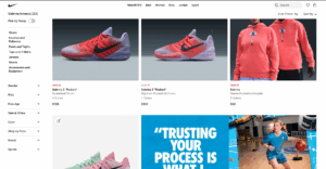- Nike: در سایت نایک، فیلترها و گزینههای مرتبسازی (رنگ، سایز، قیمت، دستهبندی) به کاربر اجازه میده دقیقاً آنچه لازم داره خودش انتخاب کنه و همین حس کنترل و رضایت در خرید رو افزایش میده.