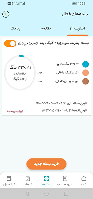 فعال بودن تمدید خودکار در اپلیکیشن همراه اول