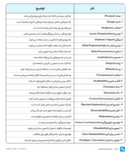 گوگل در روبریک یه لیست ۲۲ موردی آماده کرده که نشون میده چه جور اطلاعاتی میتونه برای کاربرا شفافیت ایجاد کنه. مثلا توضیح اینکه آیا انسان هم توی روند تصمیم دخیل بوده یا نه، یا اینکه مدل تجاری شرکت چه تأثیری روی نتیجه گذاشته. این لیست رو در زیر براتون قرار دادیم: