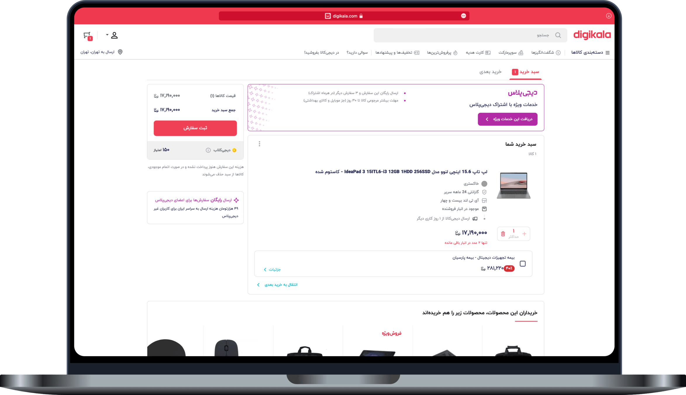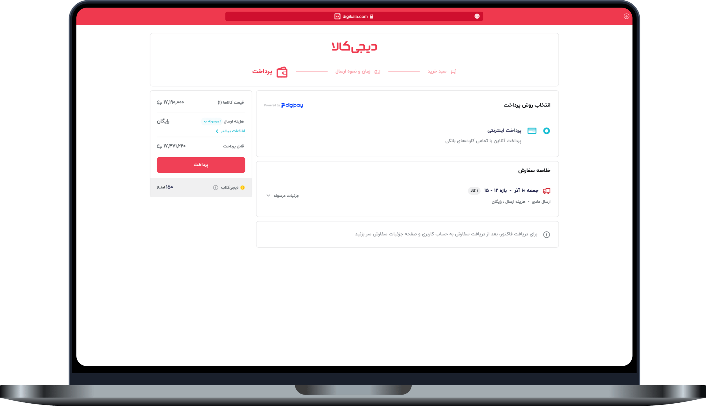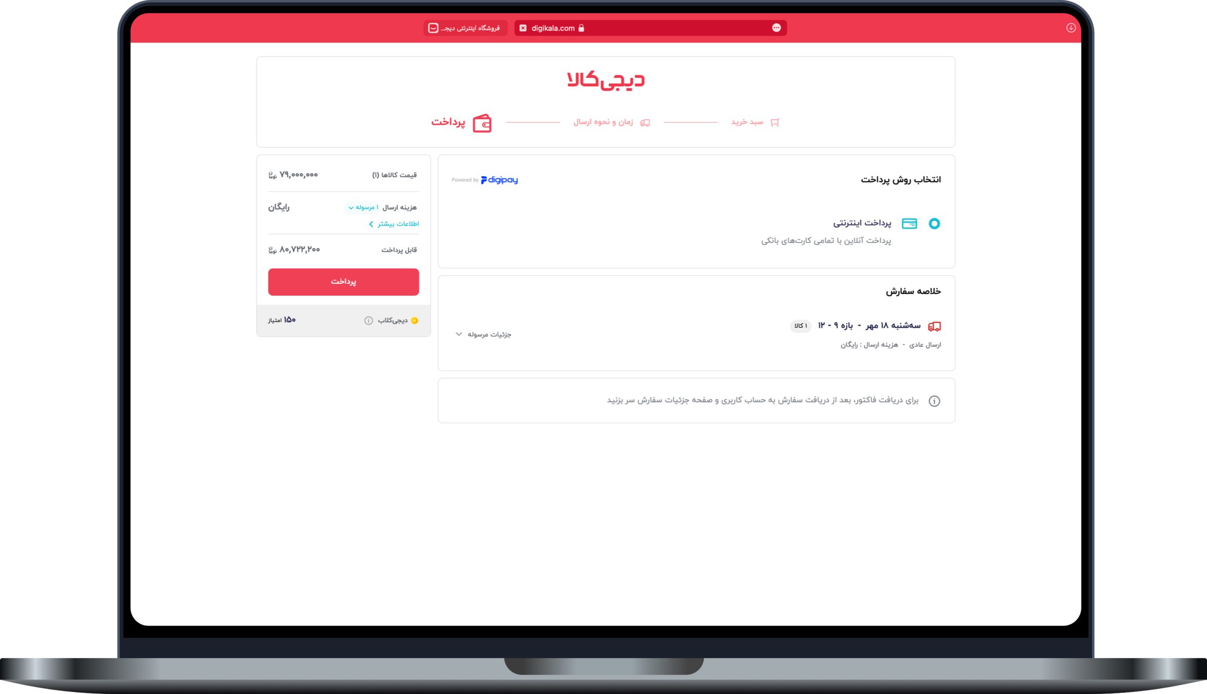 طبق مشاهده تیم داکس، در صورت انتخاب بیمه برای محصول، گزینههای پرداخت تغییر میکند و کاربر میتواند فقط از طریق پرداخت اینترنتی اقدام به خرید کند. اما در صورتی که بیمه انتخاب نکند، گزینههای پرداخت متنوعتر میشود.