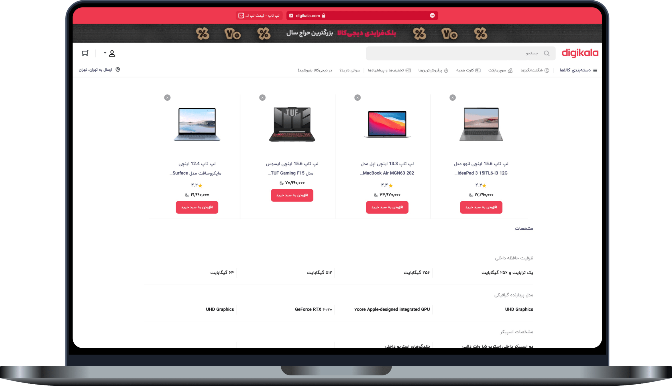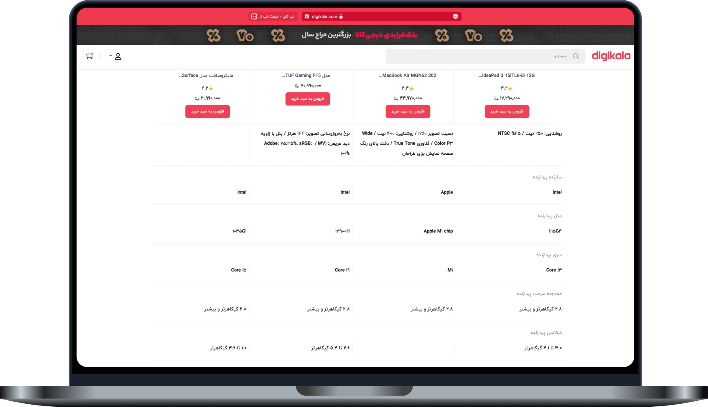 چجوری میتونم مقایسه کنم با یه مدل لپتاپ دیگه؟... چرا بدون عنوان و اینقدر کوچیک؟