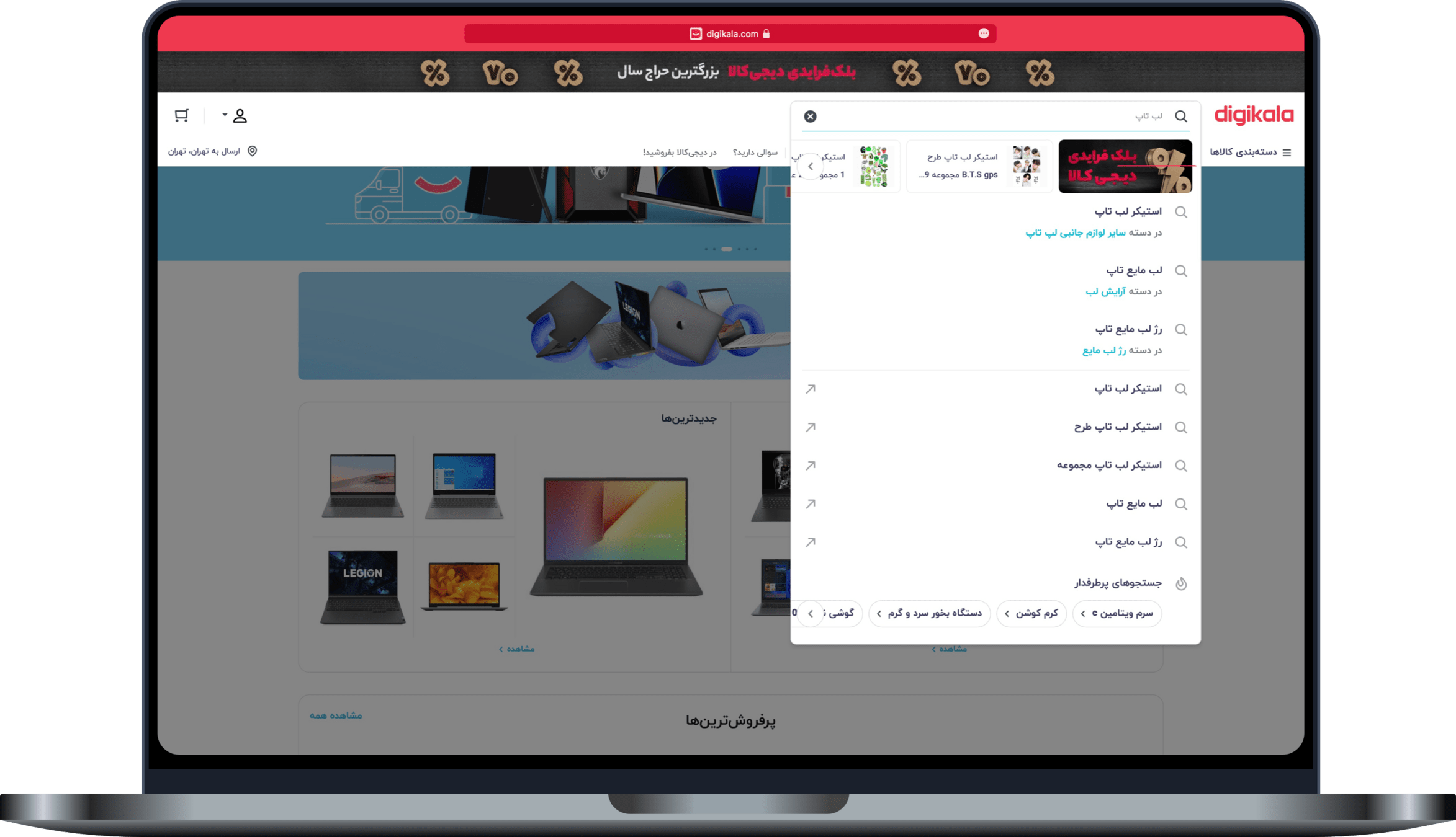 پیامهای خطا خوب اهمیت دارند، اما بهترین طراحیها با دقت از وقوع مشکلات جلوگیری میکنند. به دو روش میتوان این کار را انجام داد: یا شرایطی که به خطا منجر میشوند را از بین بیرید، یا بررسی کنید و قبل از انجام عمل، گزینهای برای تأیید به کاربران ارائه دهید. کاربر بعد از تایپ کردن مورد جستجو خود انتظار دارد عنوان کامل را جهت پیشگیری از هر نوع خطای احتمالی به عنوان پیشنهاد ببیند. در اینجا بعد از وارد نمودن عنوان لبتاپ»، پیشنهاد جستجو موارد بی ربط نمایش میدهد» و حتما کاربر باید عنوان را عینا وارد کند.