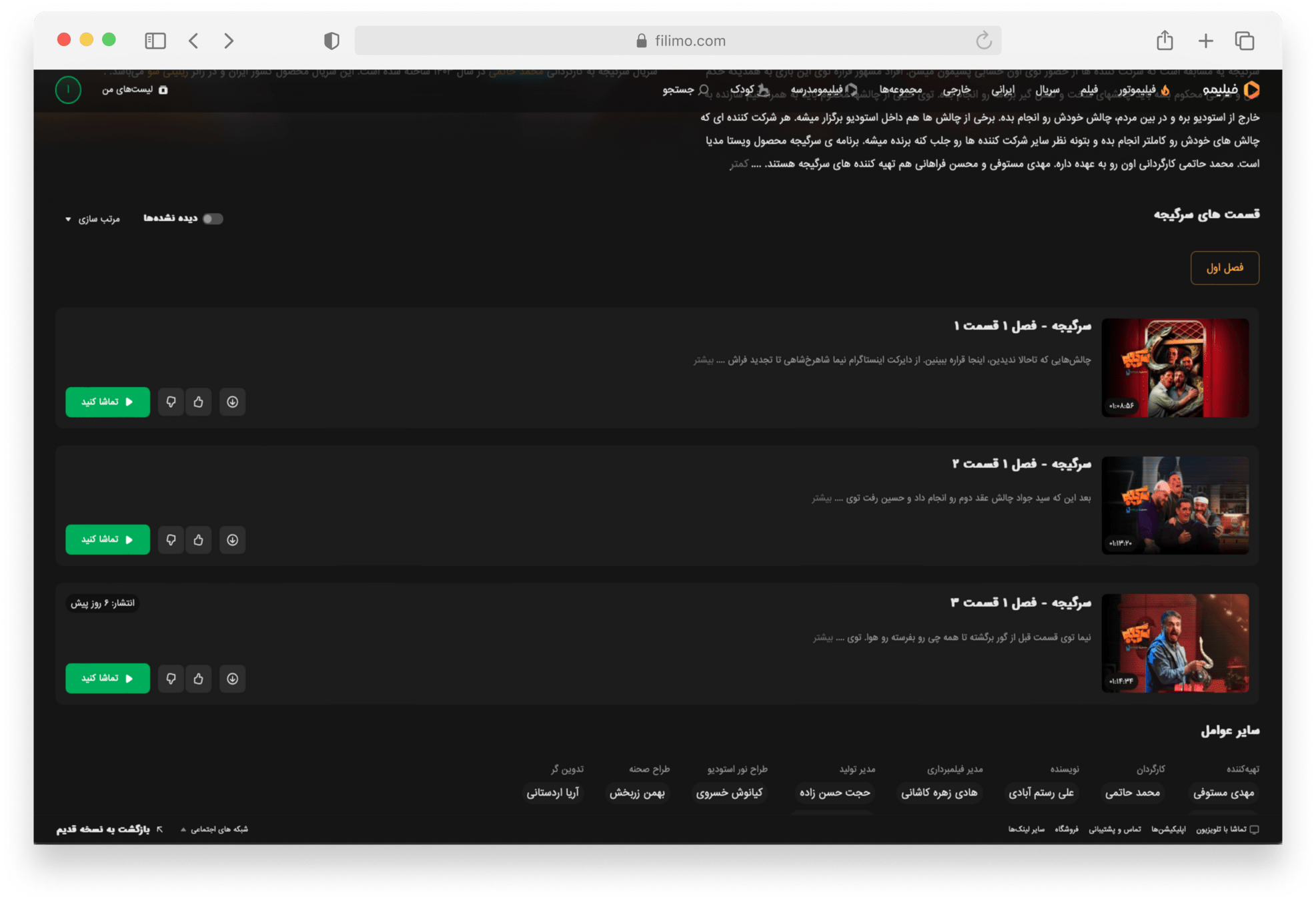 اسم و سال فیلم یا سریال مشخص نبود. امکان فیلتر کردن و مرتبسازی هم نداشت