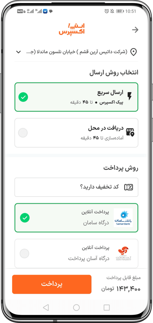 امکان دریافت در محل داره ولی مثل اُکالا نمیتونم بزنم بعدا بیاره