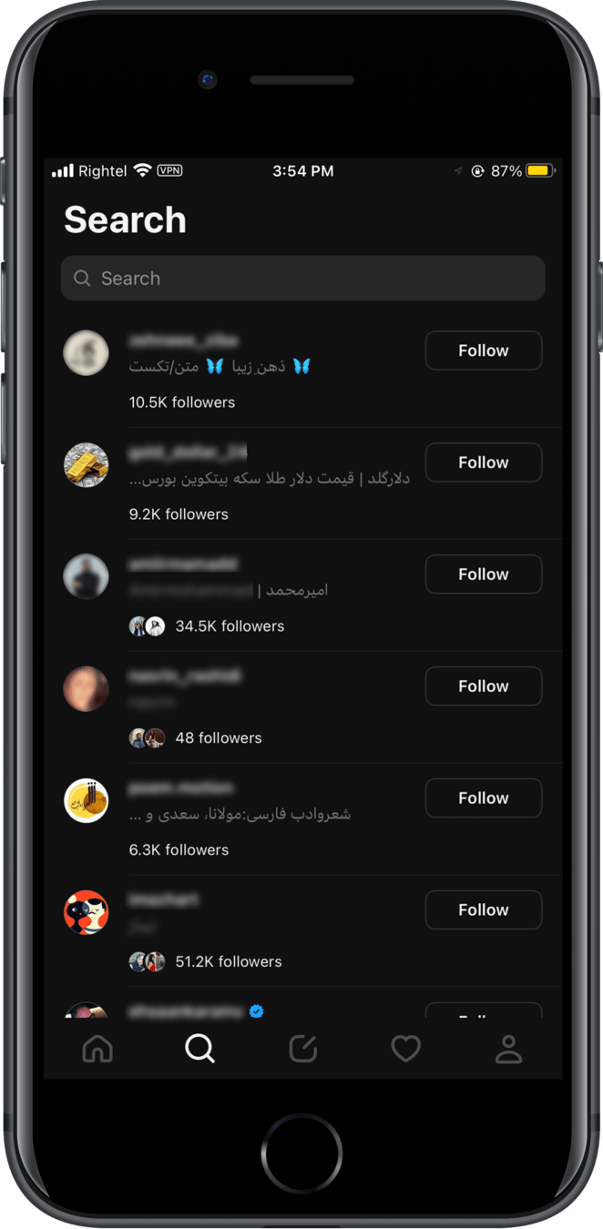 فقط کاربرای دیگه رو توی جستجو نشون میده!