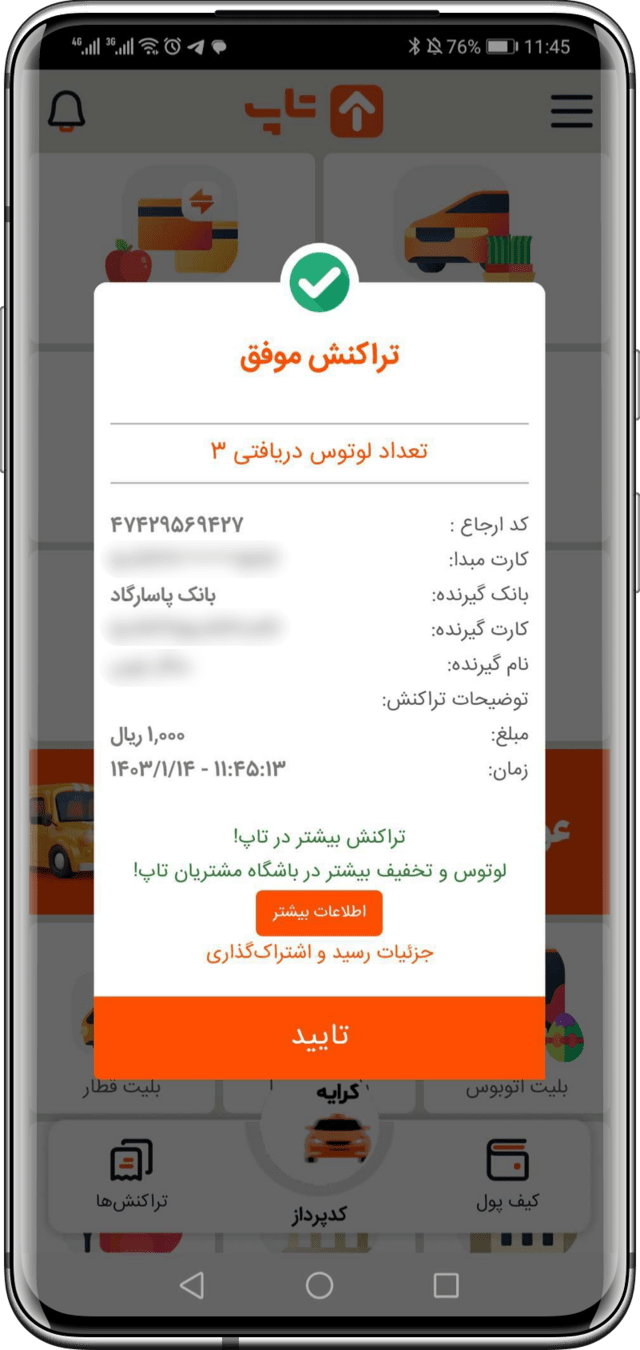 تراکنش با موفقیت انجام شد