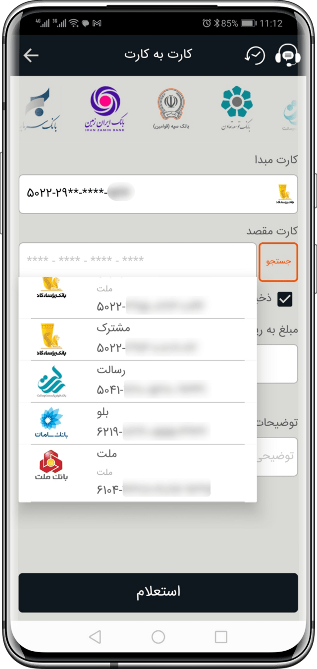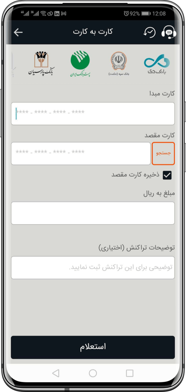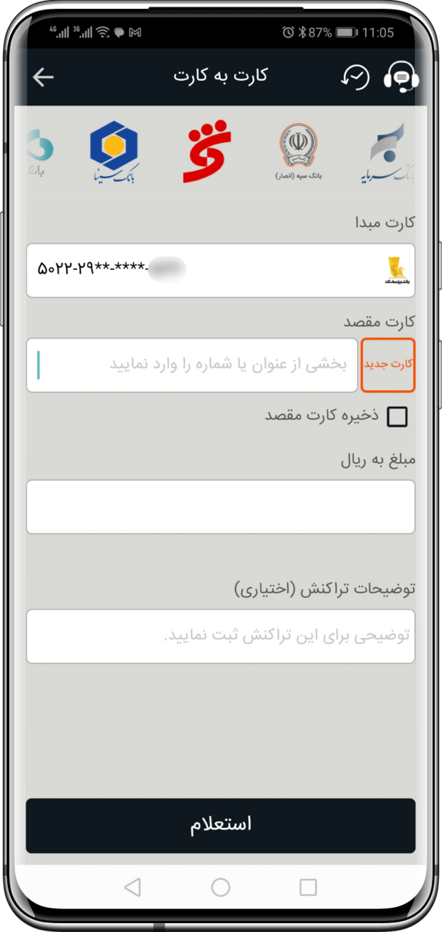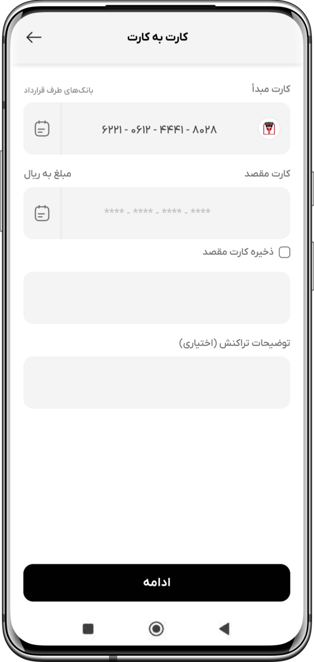 در این صفحه کاربر به راحتی میتواند گزینه کارت به کارت را پیدا کند.