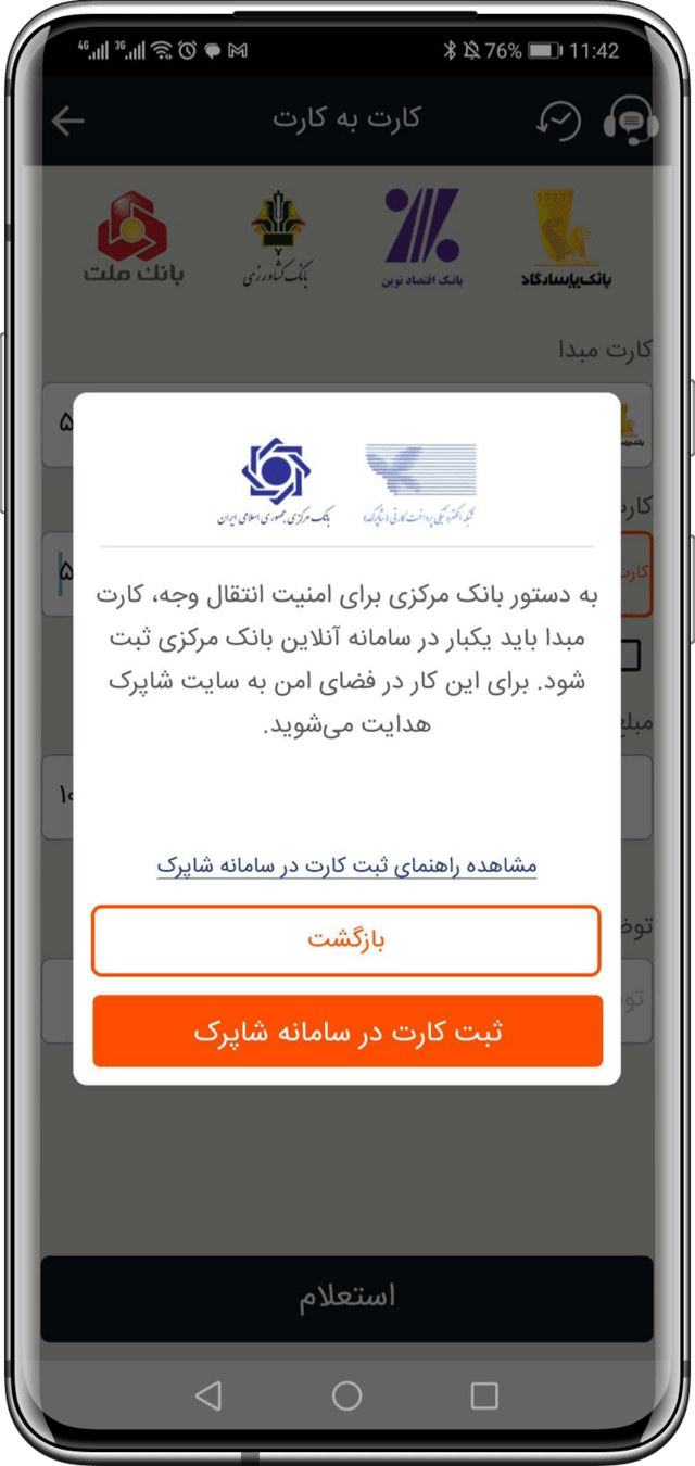 خوبه توی صفحه اولش کارت به کارت رو گذاشته