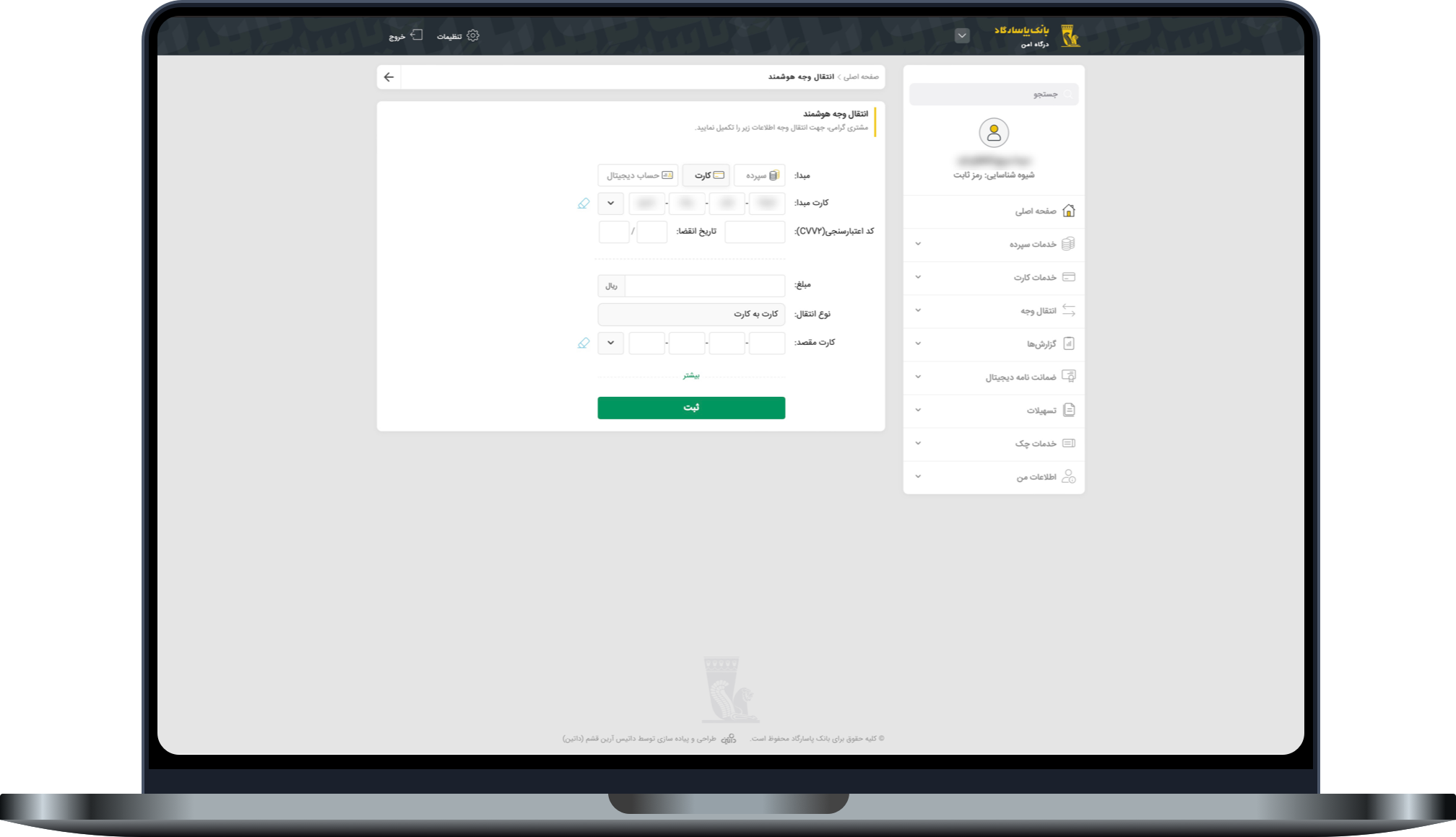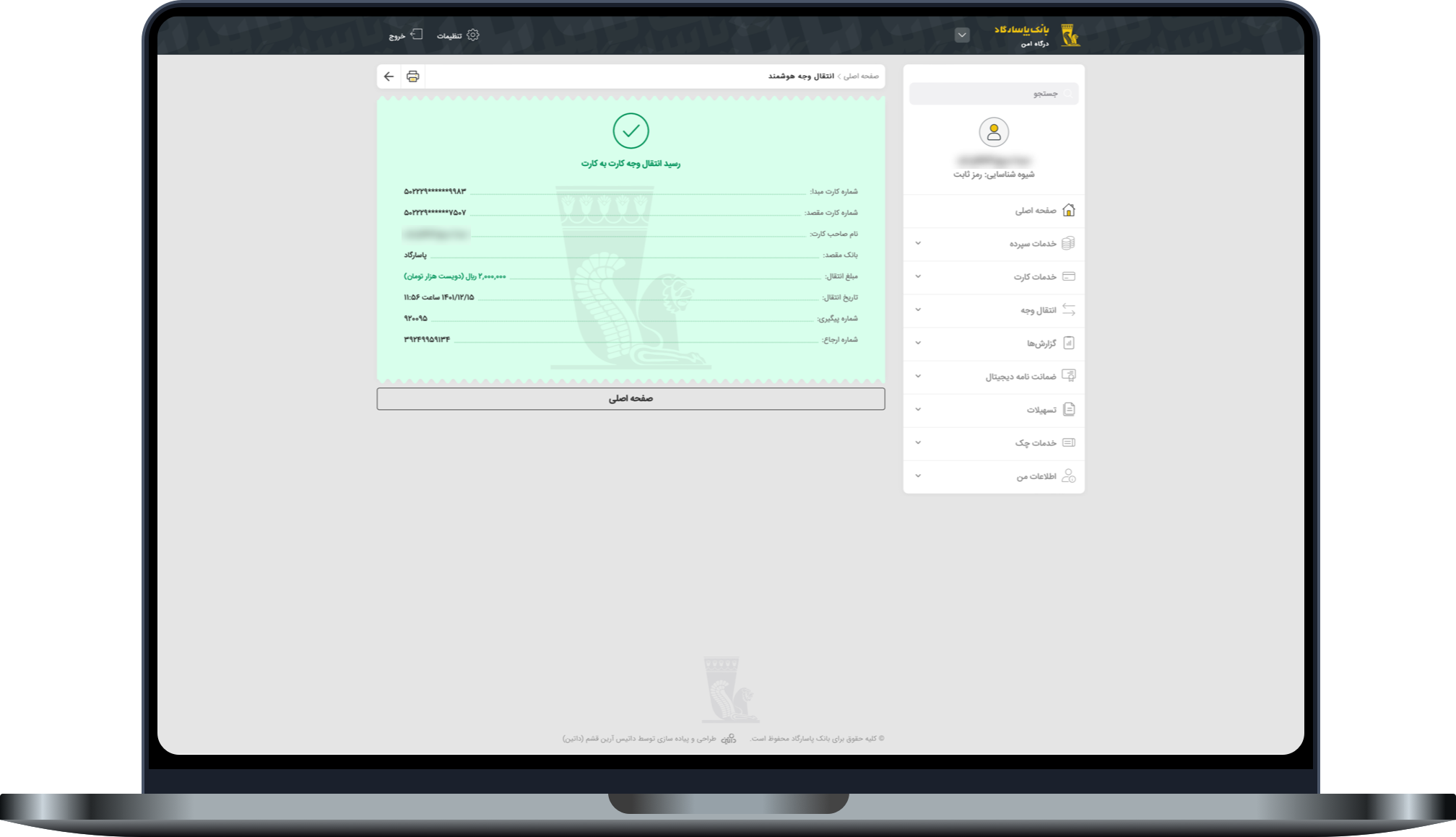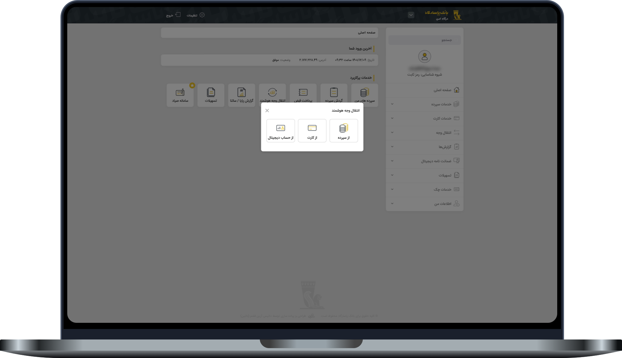 در صفحه اصلی به دلیل قرار دادن خدمت انتقال وجه هوشمند در خدمات پرکاربرد، کاربر راحتتر به صفحه "انتقال وجه هوشمند" هدایت میشود.