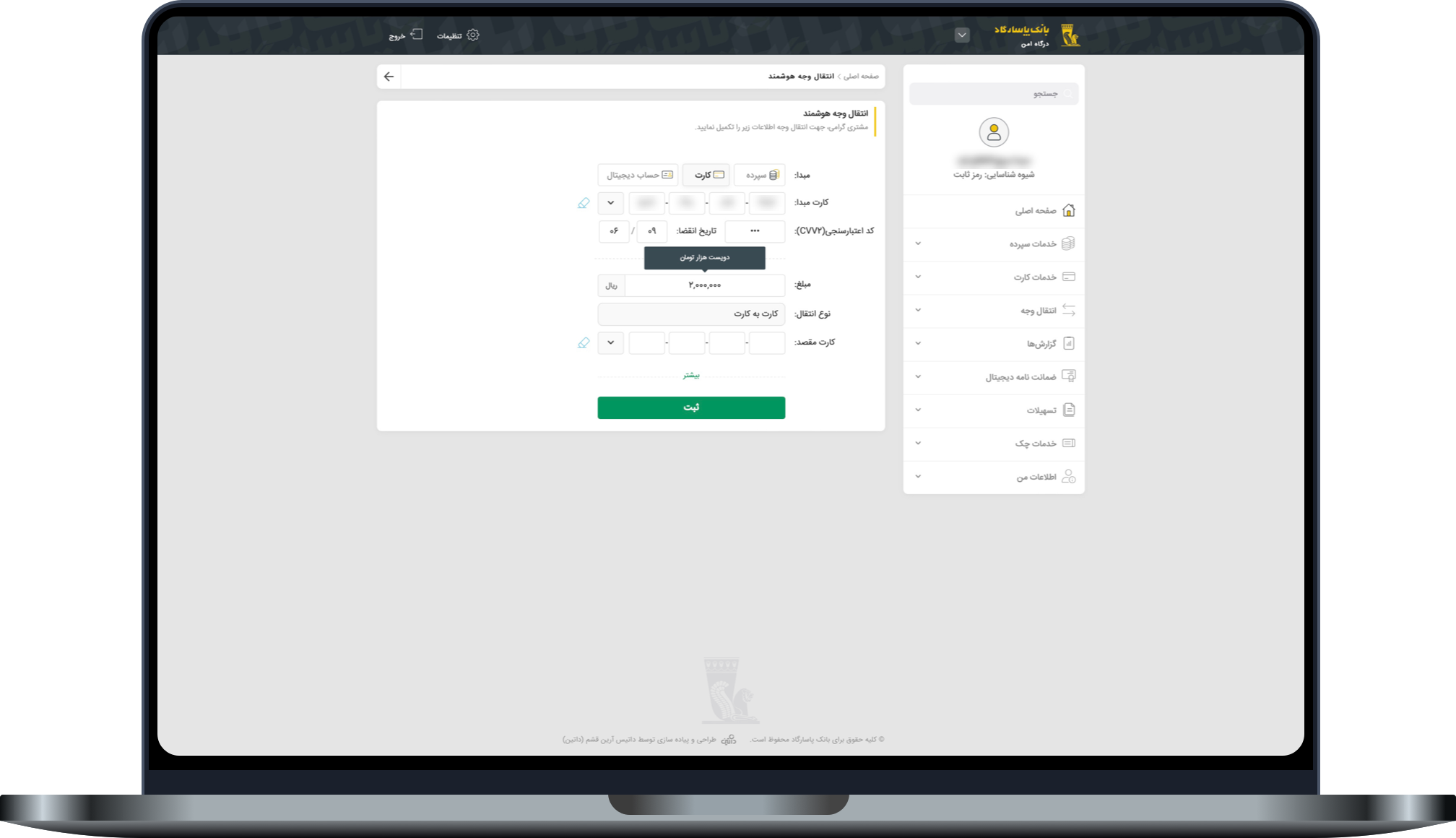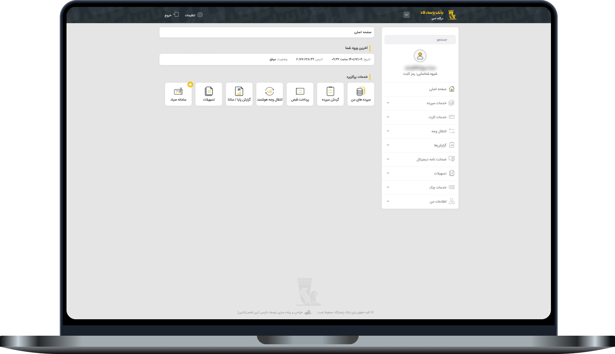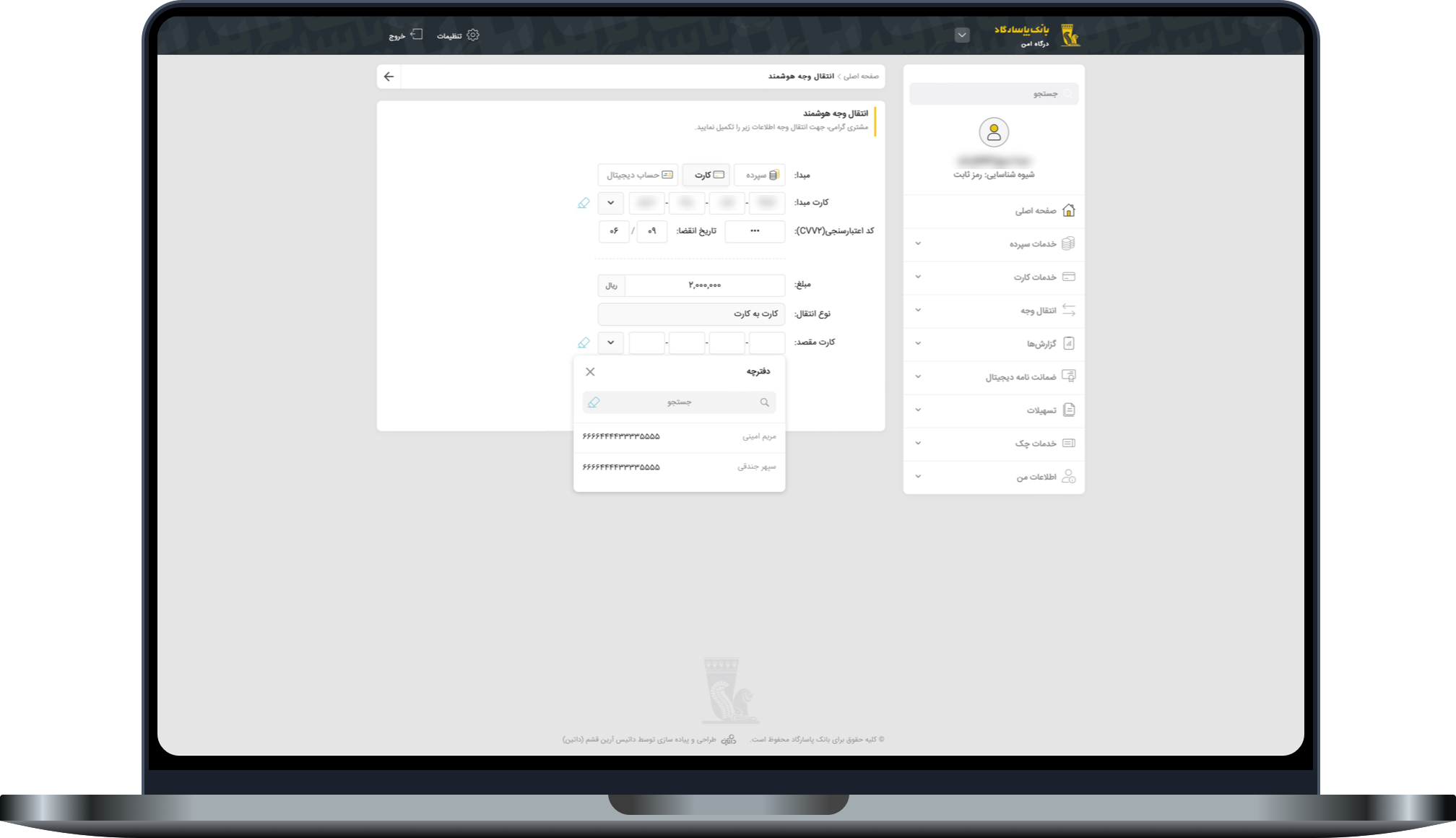 در صفحه اصلی به دلیل قرار دادن خدمت انتقال وجه هوشمند در خدمات پرکاربرد، کاربر راحتتر به صفحه "انتقال وجه هوشمند" هدایت میشود.