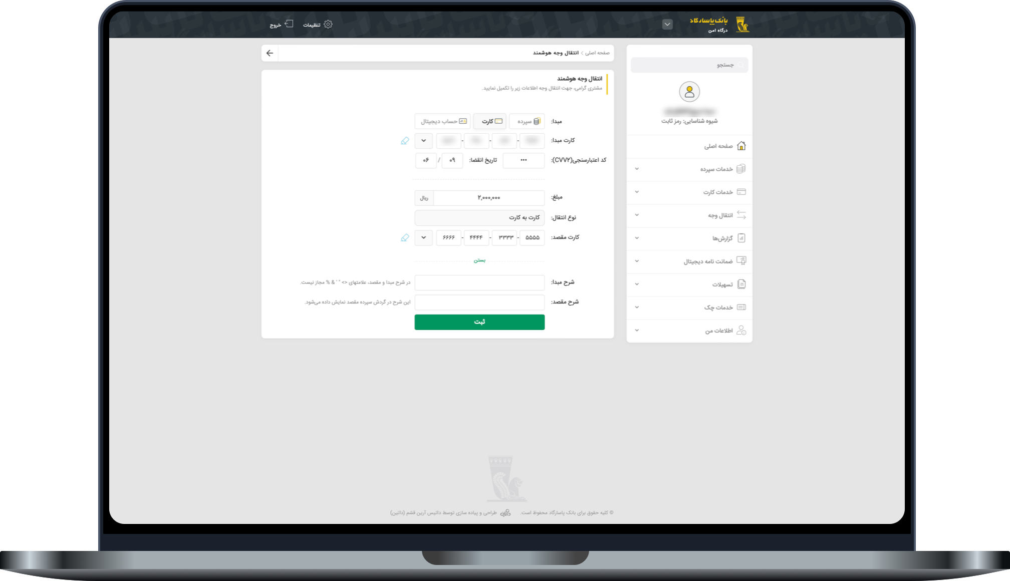 در این صفحه، به جای دکمه "ثبت" بهتر است عنوان دکمه به "ادامه " تغییر کند، تا کاربر را مطلع کنیم که فرآیند انتقال ادامه دارد.