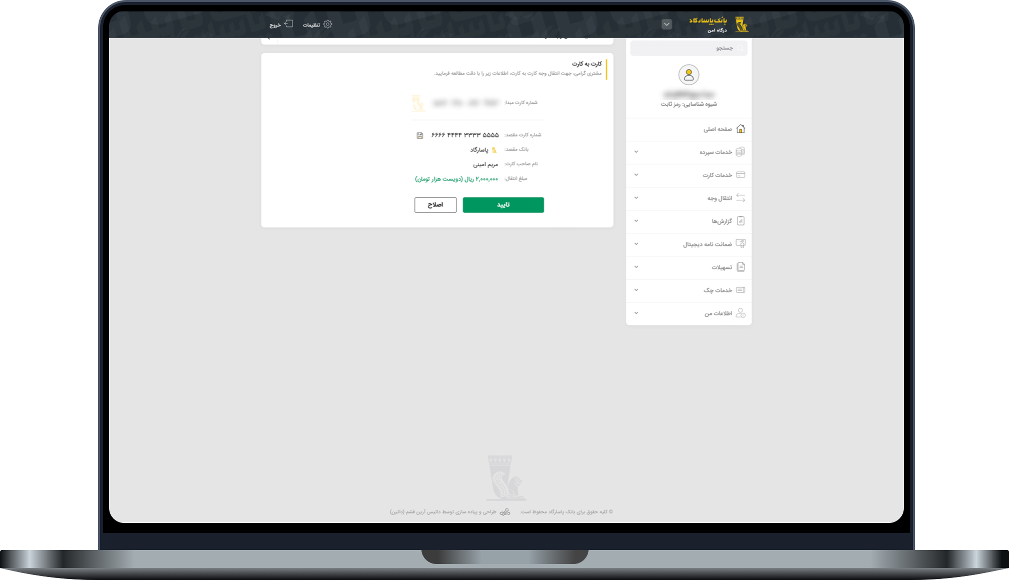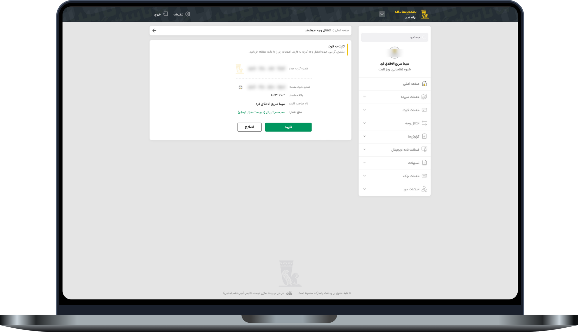 اینجا باید اطلاعات انتقال وجه رو تایید کنم